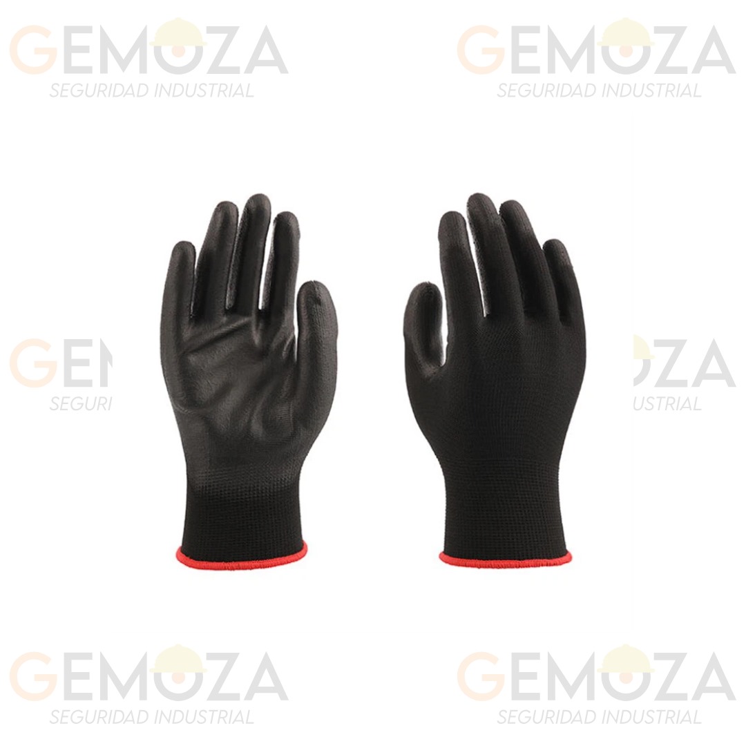 Guante de nylon negro recubrimiento de poliuretano puño rejido talla extra chica, chica, mediana, grande, extra grande